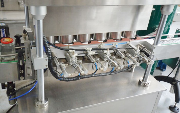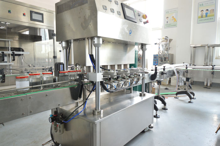 罐頭真空封蓋機用于調味品醬、水產罐頭、水果罐頭等采用目前環(huán)保的玻璃瓶包裝后對瓶內真空度有比較高要求的三旋、四旋蓋的玻璃瓶進行封蓋,本機配上真空系統(tǒng)后,能先對玻璃瓶內進行抽吸真空,然后再進行旋蓋封口,以延長瓶內容物的保質期及增強口感,而且不用加熱以保持物料色澤不變。實行自動進瓶、自動封蓋、自動進行抽真空。