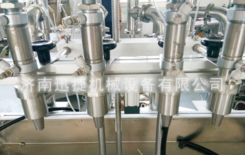 3、各個(gè)灌裝頭可在一定范圍內(nèi)任意調(diào)節(jié)間距和高度,可使用各種大小形狀的容器的灌裝。